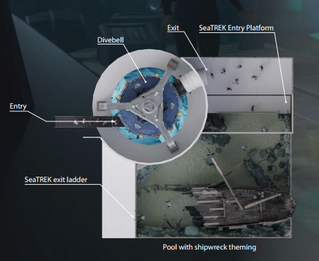 Passengers enter the DIVE BELL, ready to descend to the Alpha One Sea Base positioned 300 meters