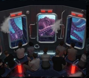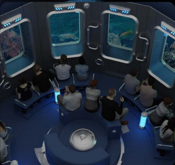 Clear LED screens come alive as the vessel begins to move, shake and drop into a virtual ocean.